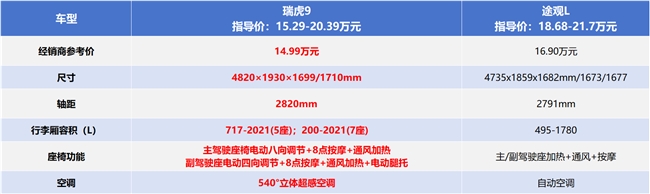 空间比拼:瑞虎9更大、更灵活