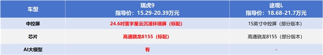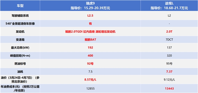 9元油价时代,不对体验妥协的家用SUV才是更优选。相对来说,瑞虎9空间与舒适表现出色,智能化水平更高,同时具有更强性能与更经济的用车成本,更能满足家庭用户对用车品质与低用车成本的期待。目前购买瑞虎9。可享20000元购车基金、至高20000元厂家置换补贴、60期超长低息贷款等多重福利,购车压力比途观L更低。如果近期有购车需求,瑞虎9无疑是更务实划算的选择。